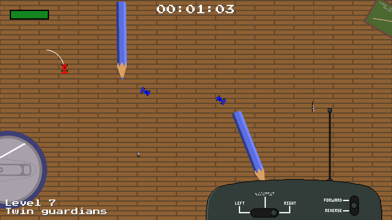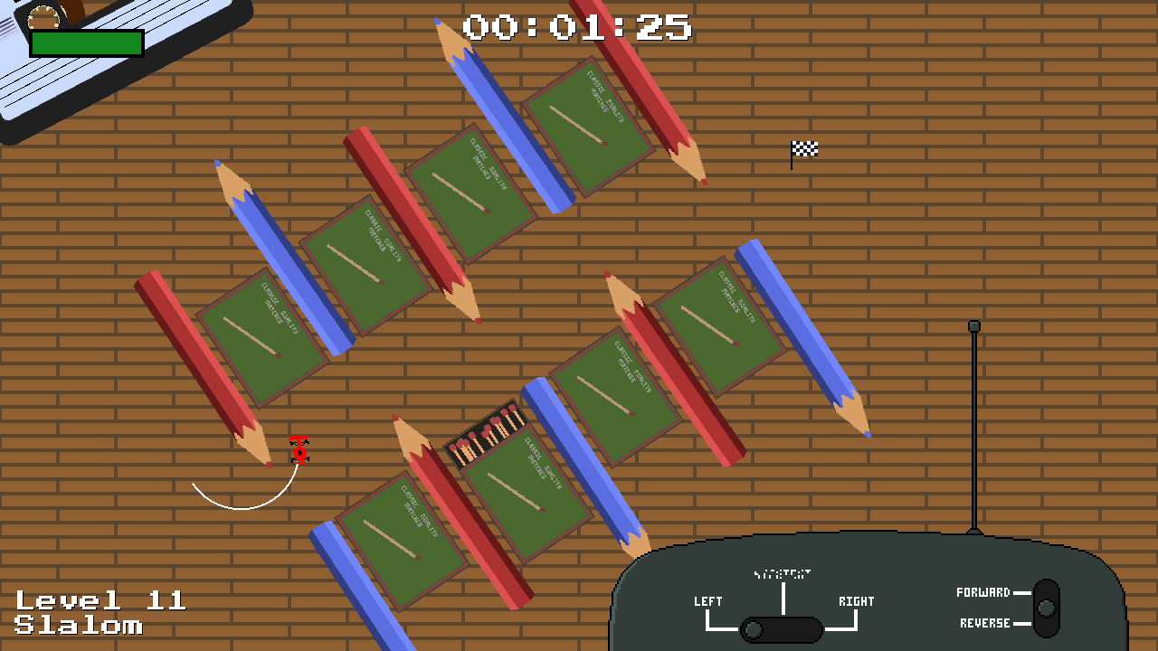 CircleRC is a top-down time-trial game where you control a small remote control car that can only steer left and right. Circle around objectives to capture them, and get to the flag in the shortest time possible!